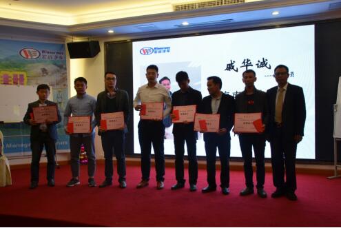 管理培訓(xùn)講座結(jié)束后,公司緊接著召開2017年度工作會議暨表彰大會。會上,周益林總經(jīng)理為2016年涌現(xiàn)出的十一名優(yōu)秀員工和一名優(yōu)秀干部授予獎?wù)?,曾傳興董事長為優(yōu)秀團(tuán)隊——財務(wù)部授予獎?wù)隆?,公司還宣讀了最新的人事任免。